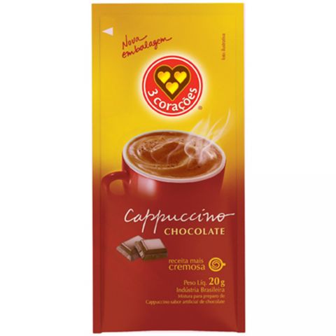 Cappuccino em pó solúvel, sache com 20g.